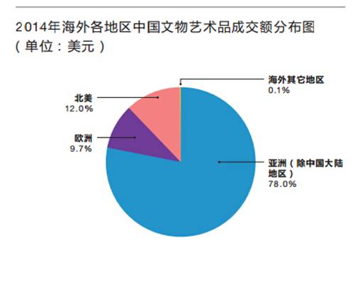 2014年全球中國文物藝術(shù)品拍賣市場再度下行 成交率創(chuàng)五年來新低 ——北美取代歐洲,躍居海外中國文物藝術(shù)品拍賣第二大市場,僅次于亞洲
