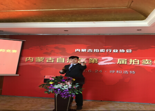 內(nèi)蒙古凱德拍賣有限公司牛然韜榮獲內(nèi)蒙古第二屆拍賣師競(jìng)賽第一名 內(nèi)蒙古自治區(qū)第二屆拍賣師競(jìng)賽于2016年6月24日上午在呼和浩特市萬戴國(guó)際酒店舉行,來自全自治區(qū)的7名拍賣師參加了比賽,本次大賽旨在加強(qiáng)學(xué)習(xí)交流,展示拍賣師主持風(fēng)采,提高自治區(qū)拍賣師隊(duì)伍的整體素質(zhì),同時(shí)選拔代表內(nèi)蒙古自治區(qū)參加全國(guó)大賽的選手。