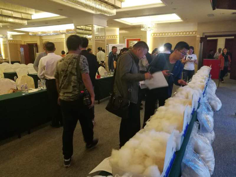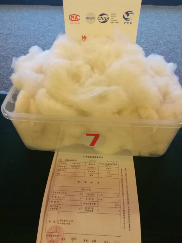 本次羊絨拍賣以無毛絨為主。羊絨拍賣企業(yè)在技術(shù)部門和合作社的配合下,對合作社社員的優(yōu)質(zhì)羊絨(纖維細度14.5微米以下)按高于市場價20~40元每公斤收購。企業(yè)對已收購的原絨通過認真分選和再分級后分梳出無毛絨,并按分梳批次將擬拍賣的無毛絨裝入纖維檢驗部門指定的包裝袋,經(jīng)自治區(qū)纖維檢驗部門公證檢測后統(tǒng)一打包封存,出具公檢證明,進入拍賣環(huán)節(jié)。拍賣成功后,企業(yè)可將部分拍賣收益以二次分紅的形式通過合作社獎勵給供絨牧戶。各環(huán)節(jié)需要見證人及照片、音像資料佐證。