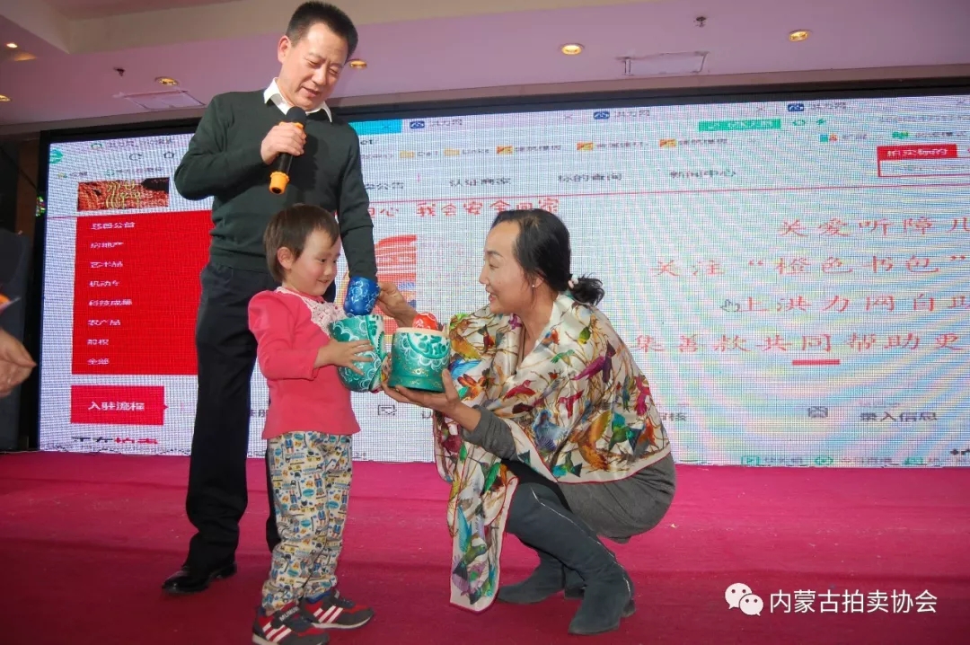 慈善拍賣會(huì)上所捐的37件拍品全部成交。最后所拍善款將為內(nèi)蒙古自治區(qū)100個(gè)聽障兒童購買“橙色書包”(橙色書包 是2016年3月3日由中國聽力醫(yī)學(xué)發(fā)展基金會(huì)發(fā)起的公益項(xiàng)目,旨在為聽障兒童提供一個(gè)交通安全"護(hù)身符)。