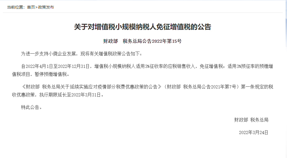 關(guān)于對增值稅小規(guī)模納稅人免征增值稅的公告